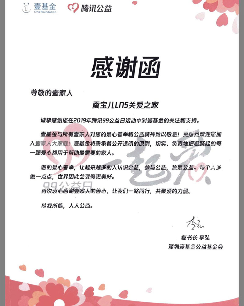 蚕宝儿LNS关爱之家作为罕见病发展中心(Cord)2019-2020年孵化组织,由Cord帮扶LNS组织内部建设、宣传倡导、病友服务、行业交流以及负责人赋能等多方面提升!在此次99公益日,非常感谢Cord的支持、帮助和陪伴,从立项、文案修改、基金会合作、项目上线、以及备战培训,让第一次参加如此重大活动的LNS学习收获了很多。同时,也非常感谢身边不遗余力传播善举的亲朋好友、感谢关爱之家病友们全力以赴的支持和传递,以及罕见病同行、医生专家等各界社会人士的帮助!“你的小爱,集大爱”!因为有了大家的帮助和支持,也让LNS在此次筹款活动中顺利开展和完成!接下来,我们也会总结了自己的不足,未来还会再接再厉!