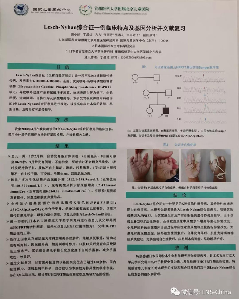 另外,由多名知名专家、教授联合撰写的关于LNS的论文《Lesch-nyhan综合征一例临床特点及基因分析并文献复习》发表在“国家儿童医学中心”和“首都医科大学附属北京儿童医院”创办的杂志上,此次也制作成壁报展示在论坛上!让LNS再次被大众看到,并做好疾病的科普!
