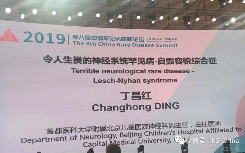 2019年9月22日上午,第八届中国罕见病高峰论坛第三天,在“罕见病的多学科协作诊疗(MDT)专题讲座中,”Lesch-Nyhan Syndrome(自毁容貌综合征)首次作为单病种,由北京儿童医院神经内科副主任丁昌红教授发言,题目为《令人生畏的神经系统罕见病病—自毁容貌综合征》。