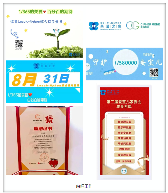 ✸2月28日“国际罕见病日”,蚕宝儿面向全体患者家庭发起了“Lesch-Nyhan综合征关爱日征集方案”的活动;通过中国LNS诊疗与科研联盟专家和全体患者家同参与投票方式的方式,最终依据投票结果定于每年的8月31日定为“Lesch-Nyhan综合征关爱日”