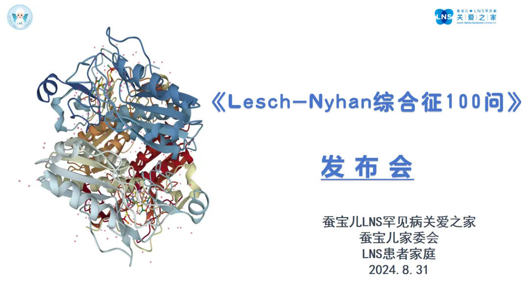 2024年8月31日,中国第二个Lesch-Nyhan综合征关爱日活动圆满结束。蚕宝儿LNS罕见病关爱之家开展了主题为【备至"关爱"·与“日”俱增】的线上关爱活动,包括 “LNS患者护理专场讲座”和由关爱之家精心编制的“《Lesch-Nyhan综合征100问》手册发布会”。希望关爱日给到孩子和家庭更特别的关怀。