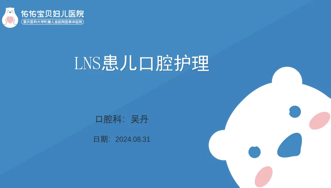 LNS患儿通常都会因为自伤行为带来很多口腔问题的困扰,所以我们特别邀请到来自重庆佑佑宝贝妇儿医院口腔科-吴丹医生为大家带来《LNS患儿口腔护理》的专场讲座。吴医生生动形象地科普了关于口腔和牙科常识,并着重站在LNS患儿的角度,从口腔牙齿易出现的问题到如何保健,从口腔咬合垫的应用到口唇损伤的用药和护理以及拔牙风险评估和建议等方面做了十分周详的讲解。