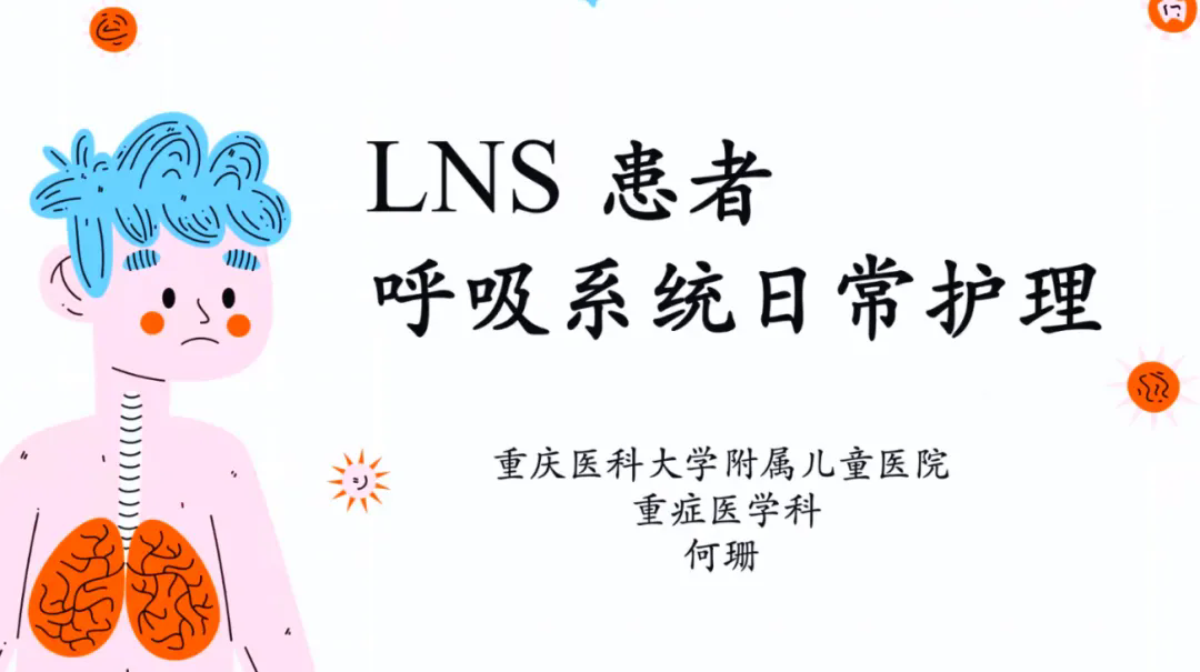 近年来,由于LNS患者终生生活无法自理且不会表达,常因家长日常护理的疏忽导致不少孩子出现了肺部积痰,甚至出现肺部感染进ICU的情况,为了提升家长日常护理意识,勤于观察和注重保护,我们邀请的最后一位讲者是来自重庆医科大学附属儿童医院ICU专科护士何珊老师,她的讲座内容是《LNS患者呼吸系统日常护理》。何老师从呼吸系统常见症状、咳嗽咳痰的居家护理、异常情况的识别干预三方面做了详尽分享,并用科普视频教大家学会如异物卡住该如何处理等。