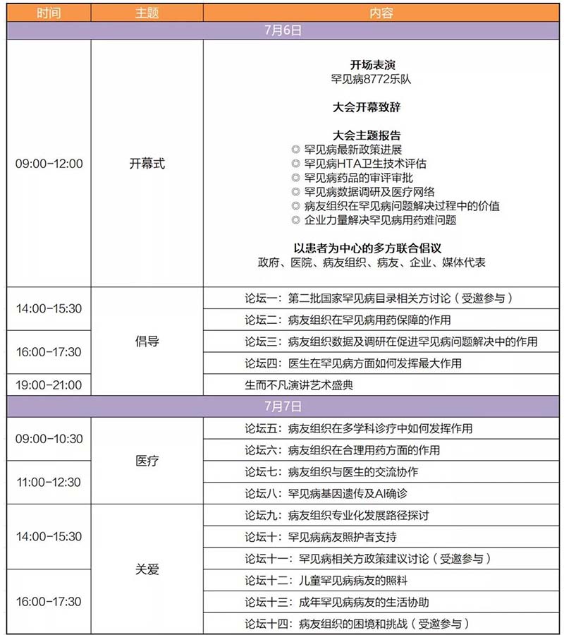 本届大会有14个分论坛,分为“倡导”、“医疗”和“关爱”三大版块(点击蓝字可回顾),今天,7月6日首日的详细议程出炉啦!来看看都有哪些报告和嘉宾吧!