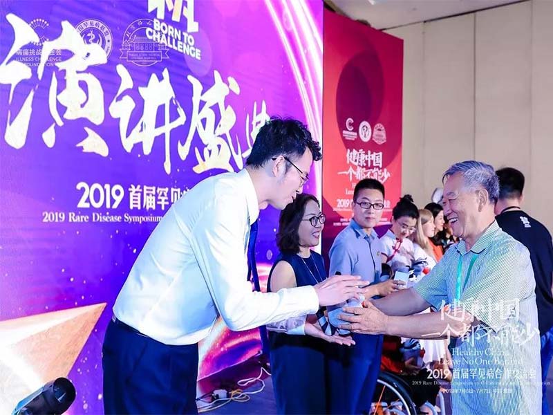 盛典上,病痛挑战基金会秘书长王奕鸥邀请国家卫健委罕见病诊疗与保障专家委员会办公室主任、中国罕见病联盟副理事长兼秘书长、北京协和医院副院长张抒扬教授一起,为马丁颁发特约导师证书。马丁表示很高兴能为罕见病做出自己的贡献。相信今天的九篇演讲,会像九个种子,种到不了解罕见病的人心里,慢慢发芽。